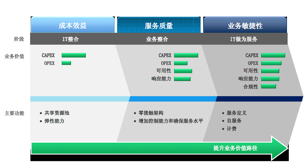 虚拟化设计方案通过IT整合、业务整合和以IT为服务的系统建设与运维的技术演进,可催使企业在成本效益、服务质量和业务敏捷性等方面均获得大幅改进。