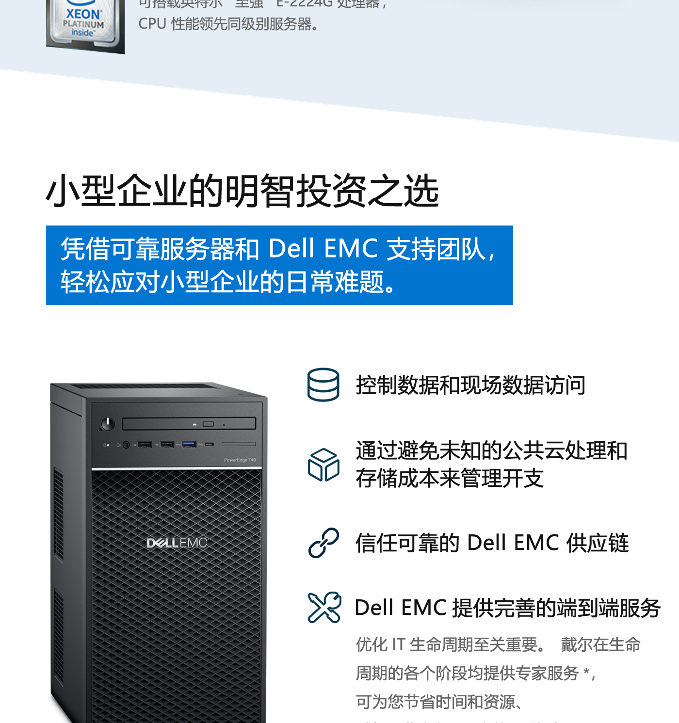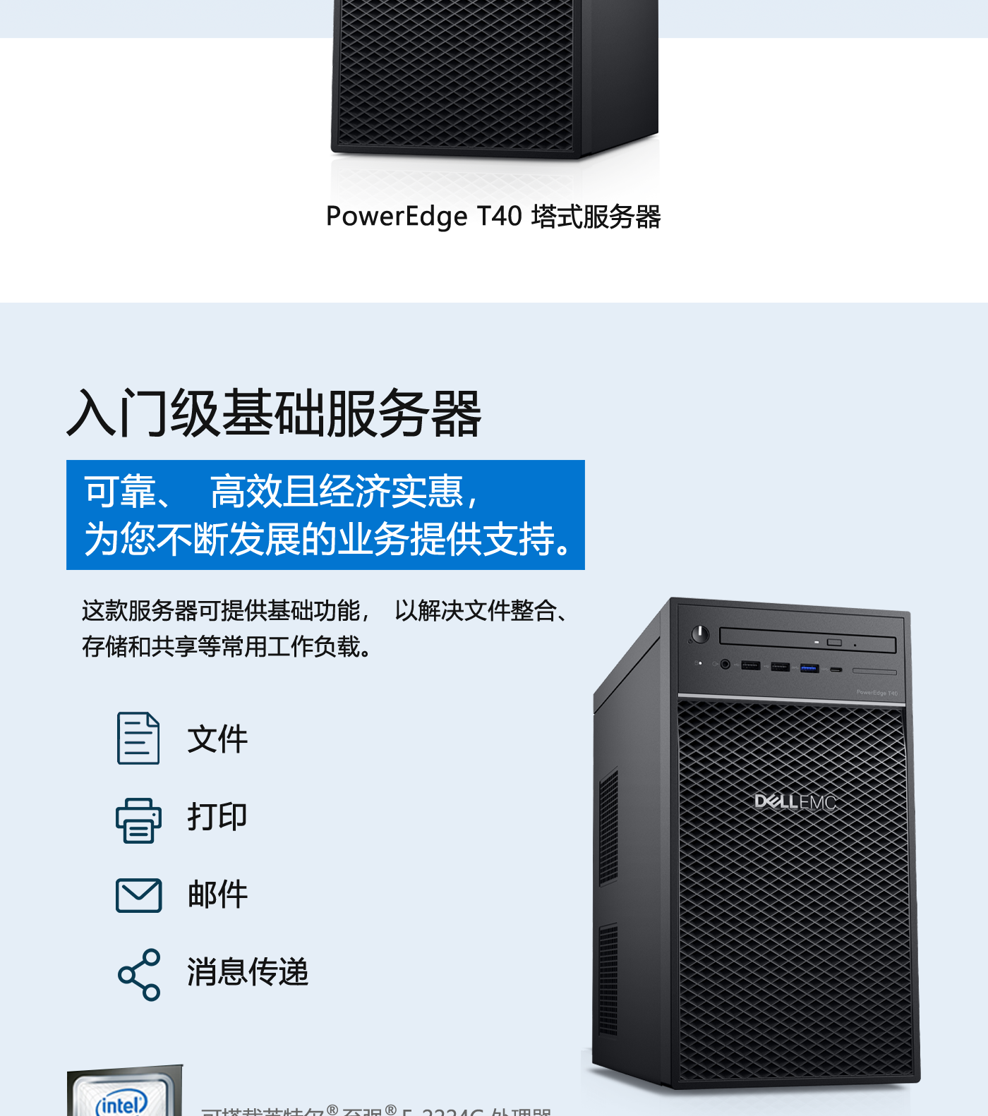 PowerEdge T40 英特尔®奔腾® G5400 3.7GHz,4M 缓存,2C/4T,无 turbo (58W)/8G 非-ECC UDIMM/1TB,无 TPM